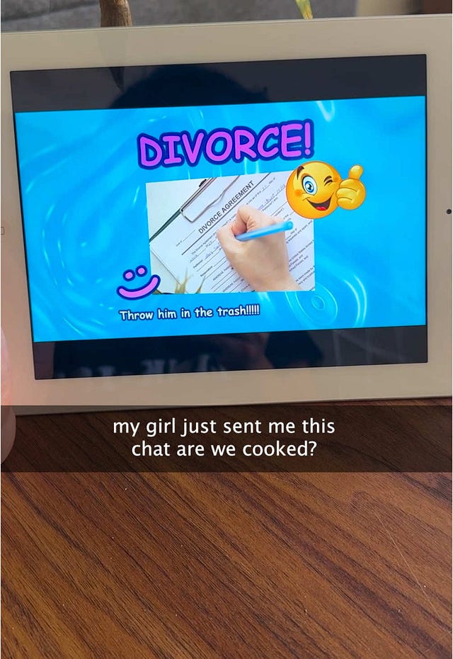 And, yes, one way to do that is to make TikToks where you have a frog officiating a wedding where the entire wedding party is different scents of Pine Sol. Which, ha ha, except I promise the next time I’m in Target and I walk by wherever the hell they keep the Pine Sol, those Tiktoks will be the first thing I think about.