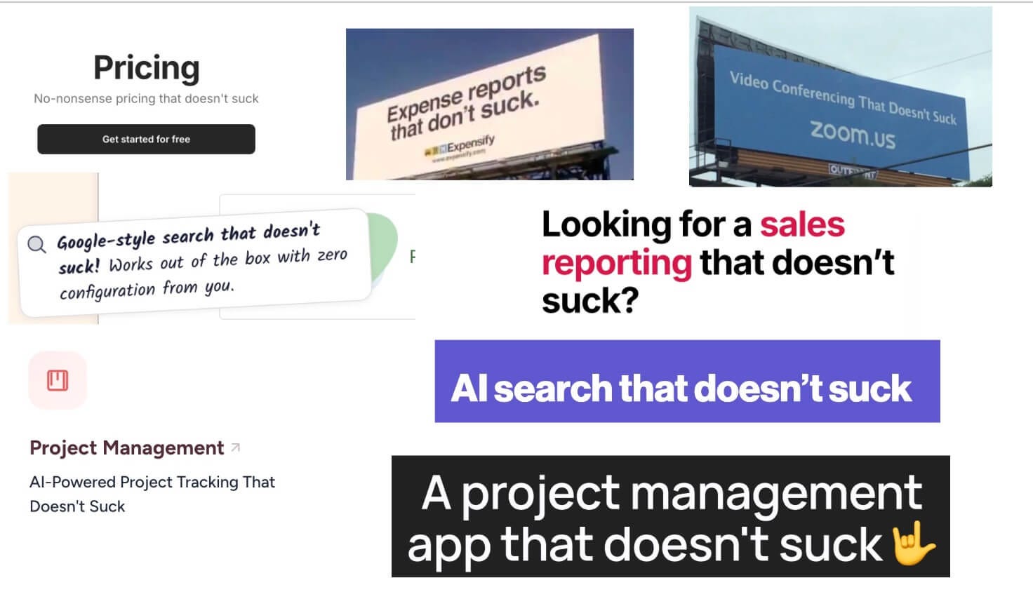 Yes, I will note the irony that, in fact, copy that doesn’t suck does not include the phrase “that doesn’t suck.”