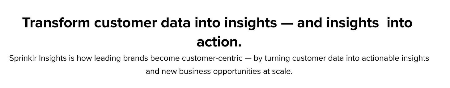 I’ve yet to mention that Sprinklr has been incredibly successful - they went public a few years ago, and they’re definitely a leader in whatever space Unified-CXM is. Which is why they deserve better than to have an extra space between “insights” and “into” in that headline.