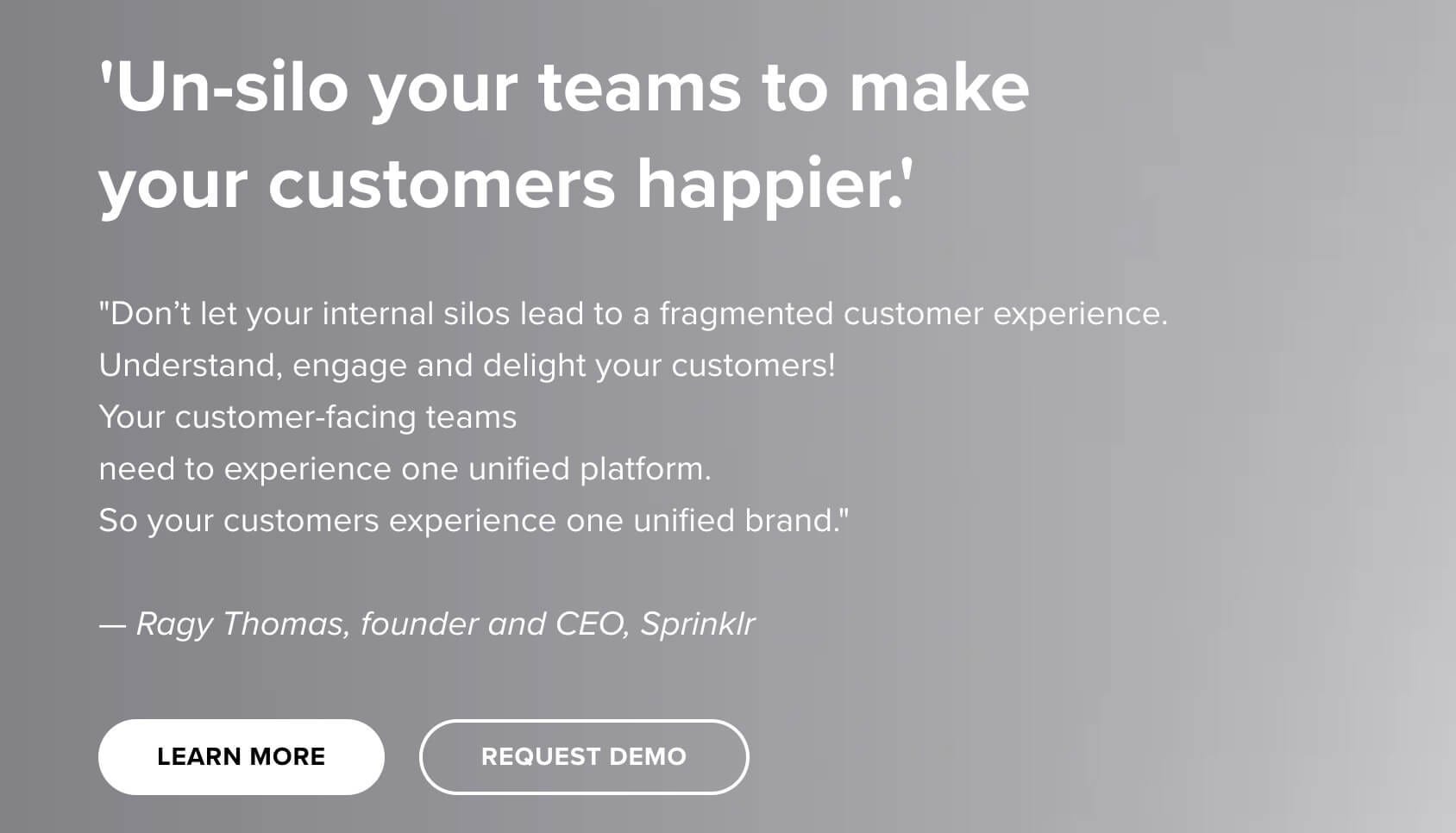 It’s been a while since we dug into a homepage and talked about what it’s trying to achieve, so I thought today we’d jump into “Unified-CXM” (???) platform Sprinklr.
