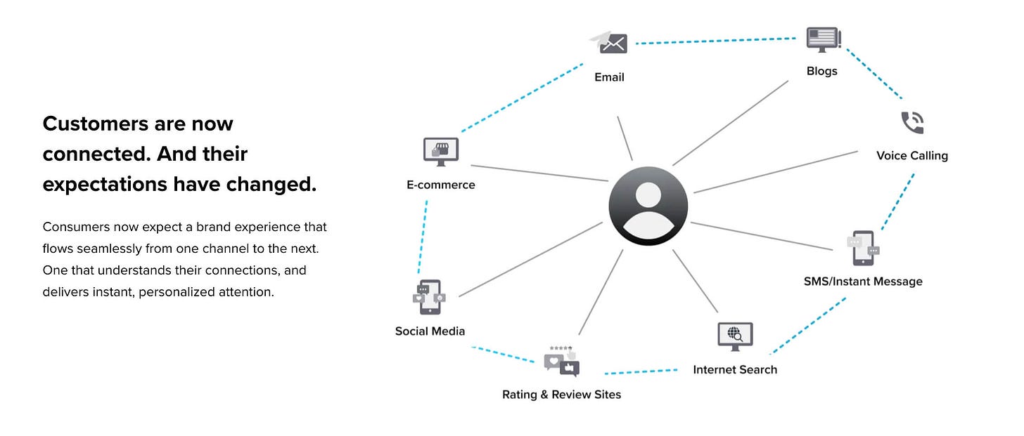 Then the logic of “Your customer-facing teams need to experience one unified platform. So your customers experience one unified brand” is wonky. Why do my customers care whether my teams experience a certain type of platform?