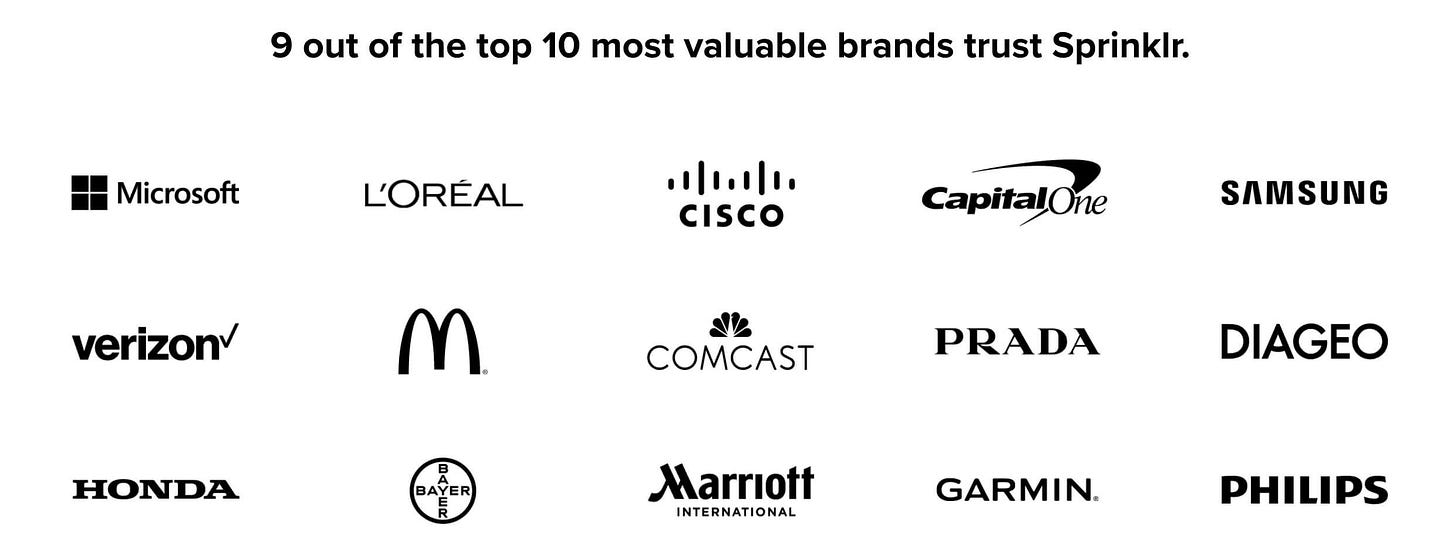 The headline is great and shows that this is a platform for enterprises. But if it’s 9 out of 10 brands trusting Sprinklr, why are there 15 brands?