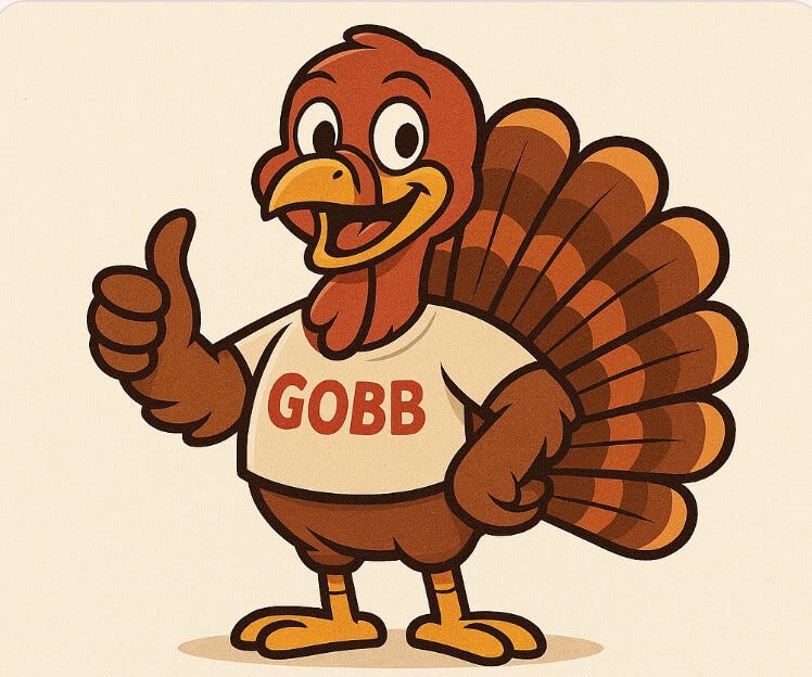P.S. - We hit 3,000 Gobbledy subscribers today! That’s a huge milestone for the newsletter - I barely know 4 people outside of my family, so that leaves 2,996 of you whom I don’t know personally who have joined this silly community of readers. It means a lot to me, thank you. And if you enjoy this, please share it with someone. They’ll enjoy it too (and if they don’t, just let me know and I’ll yell at them, like I’m the press secretary).