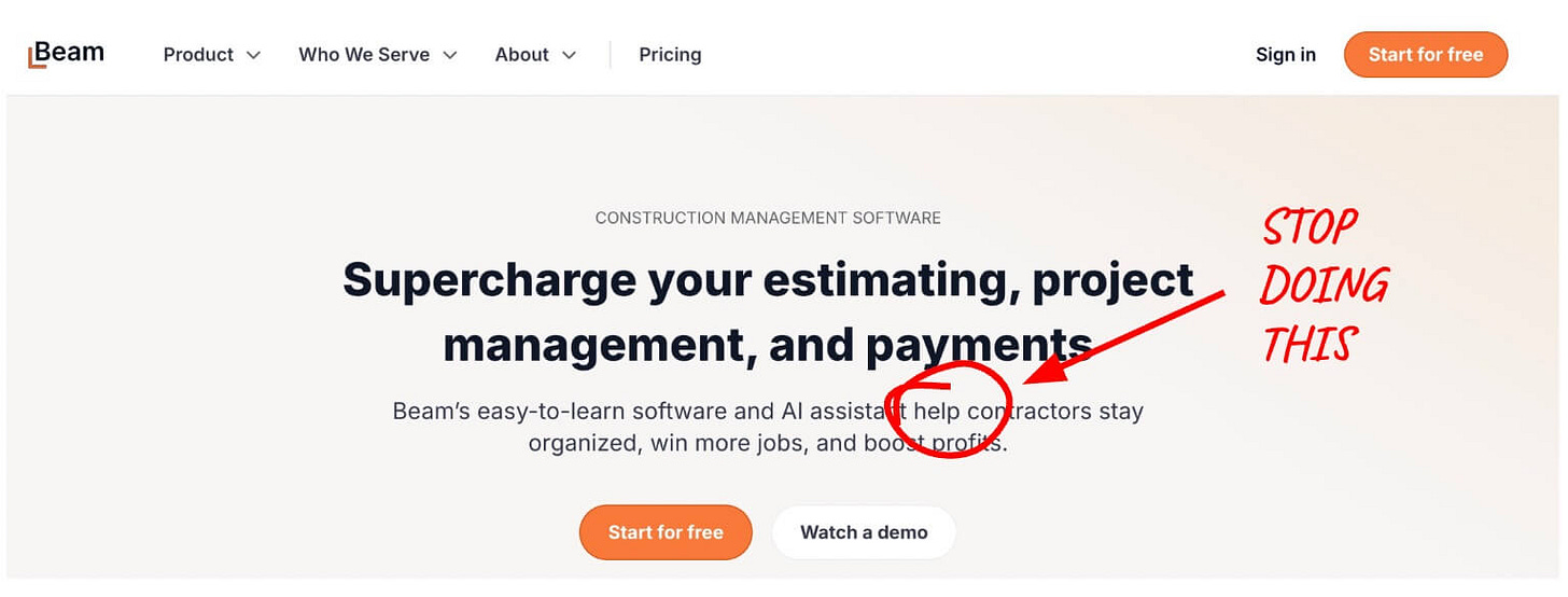 In the case of construction software company Beam (whom I picked on in the image above), they should change their copy from: